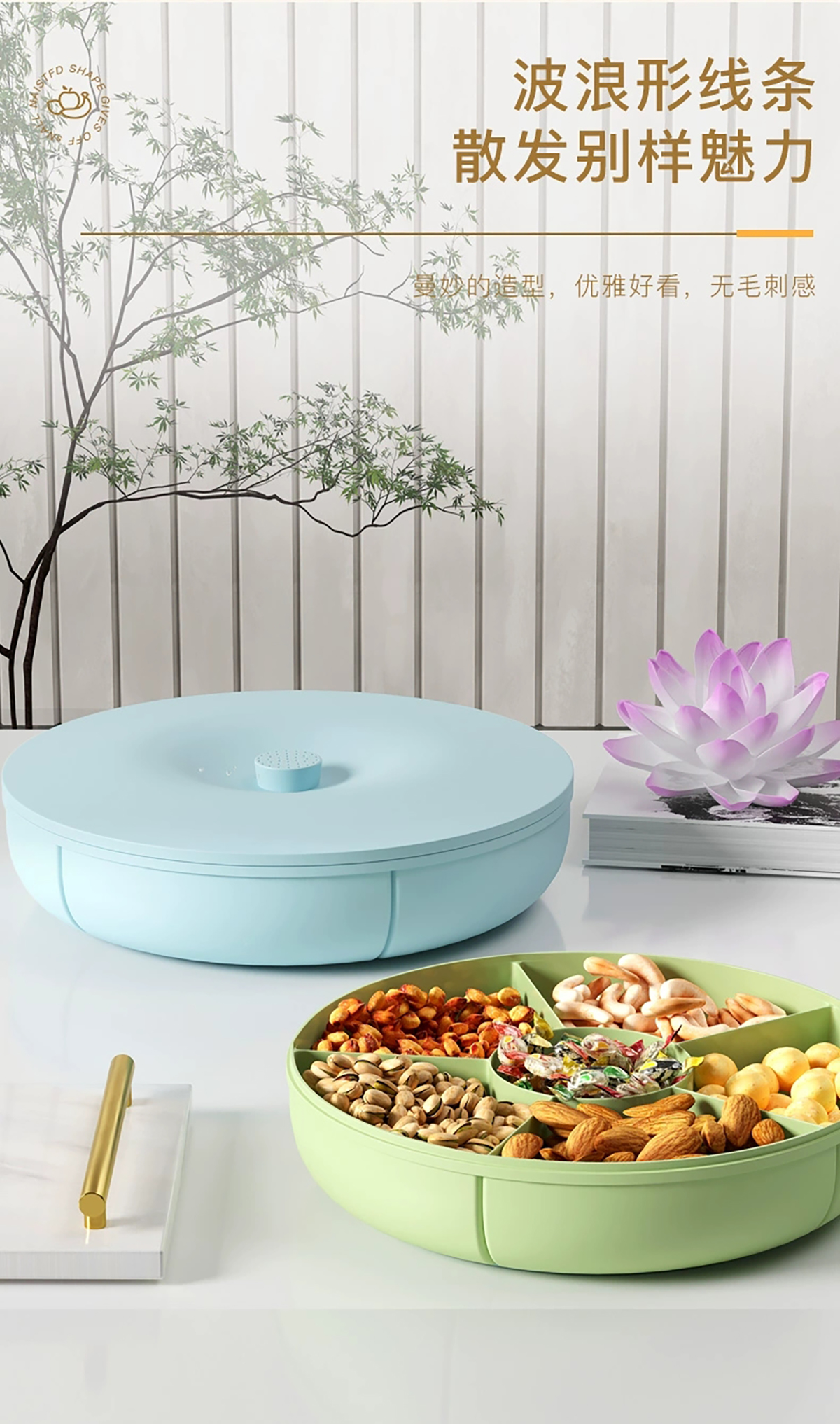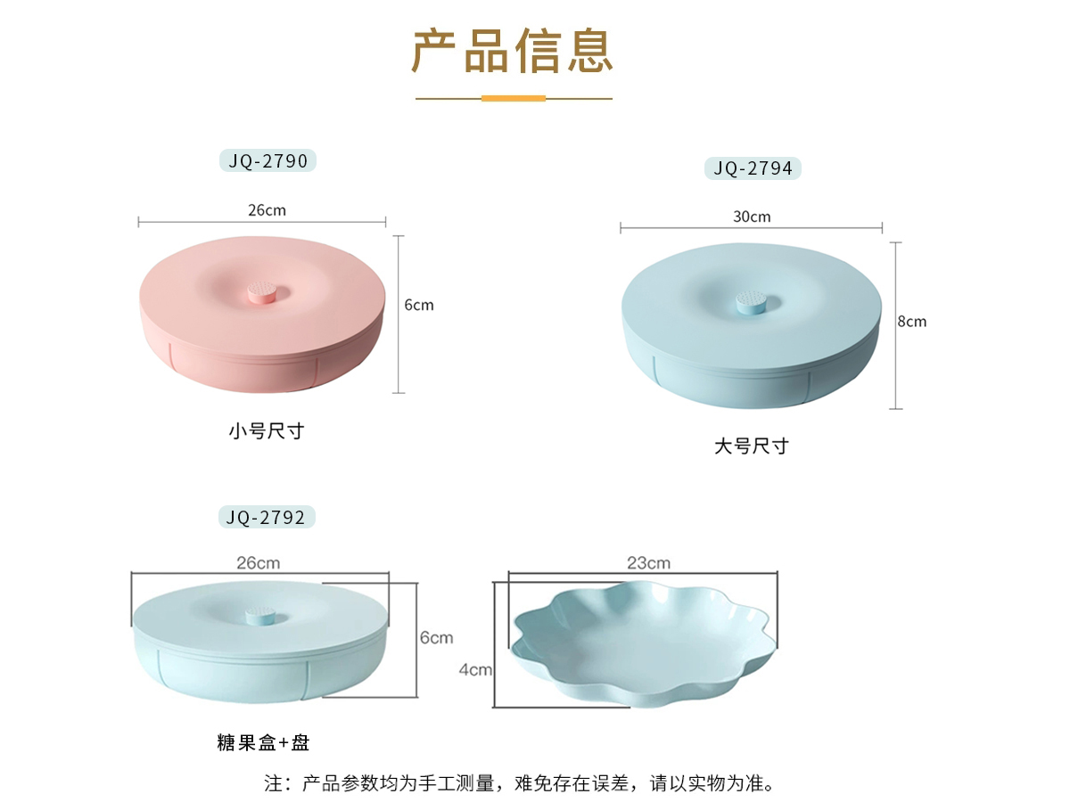 JQ-2792(糖果盒+盤):盒:Φ260*高度80mm/盤:Φ338*高度49mm