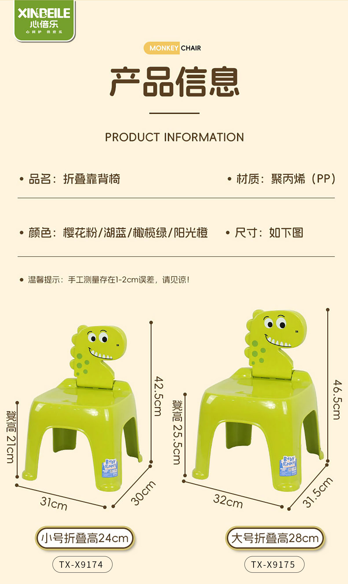 Size: TX-X9174(小):310*300*靠背展開高440mm 310*300*靠背折疊高240mm TX-X9175(大):330*320*靠背展開高480mm 330*320*靠背折疊高280mm