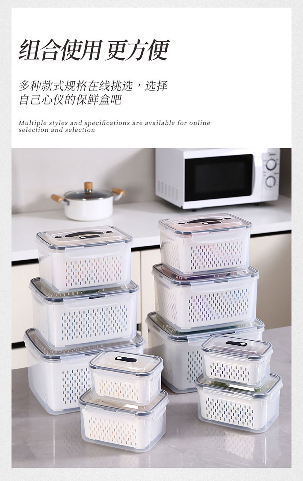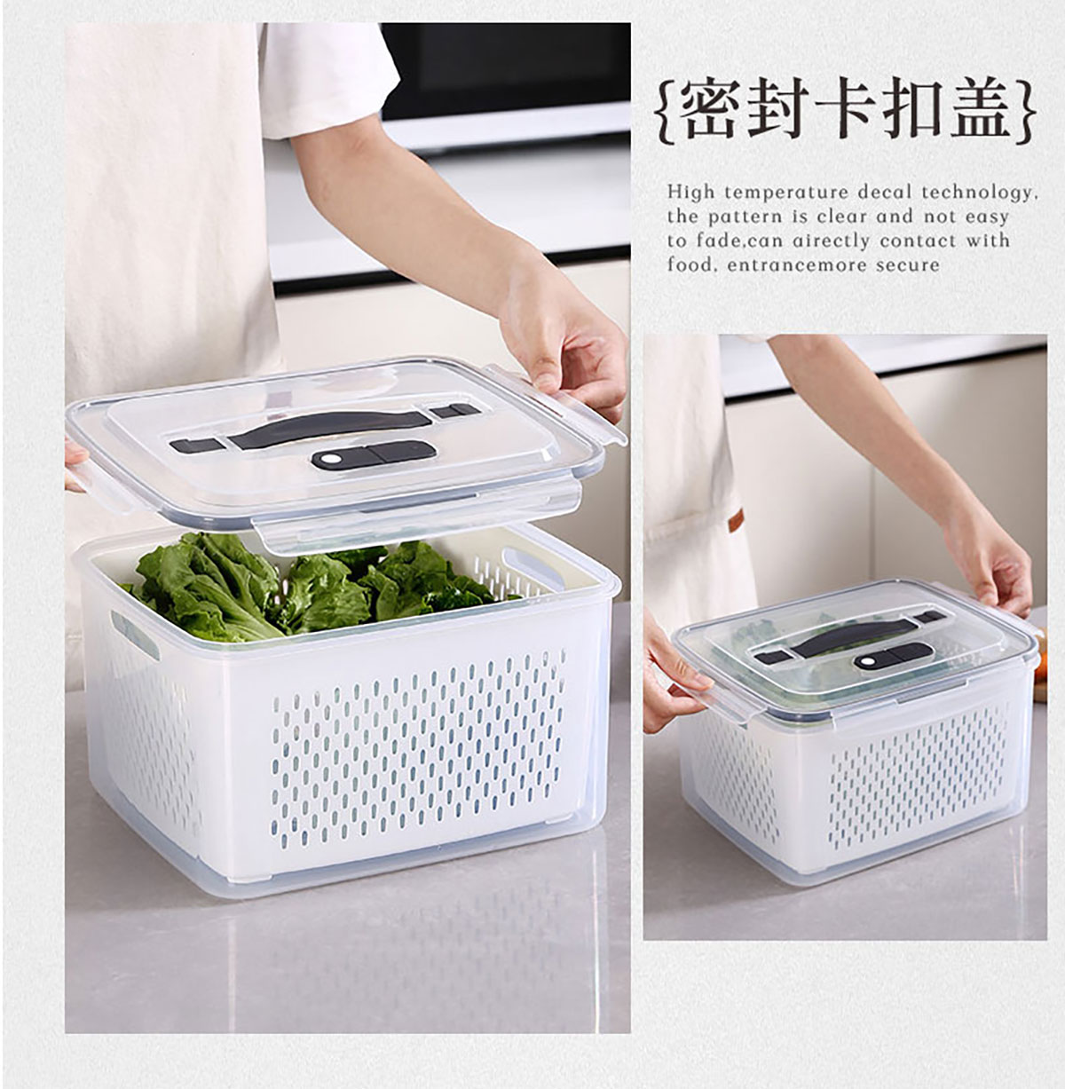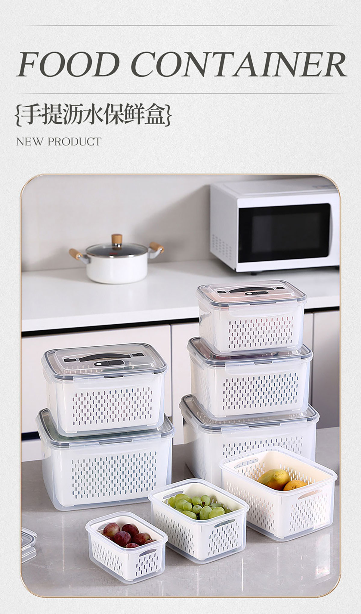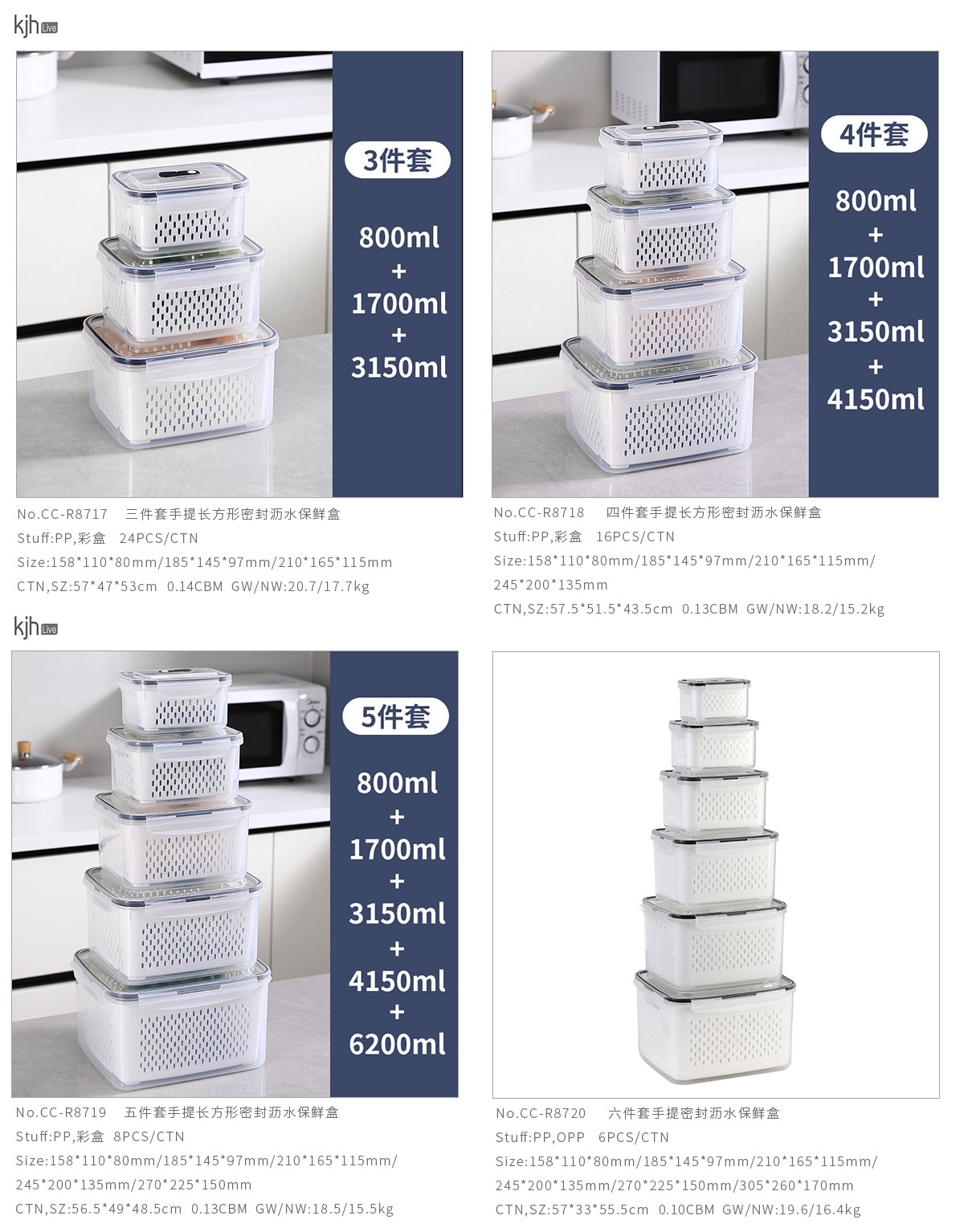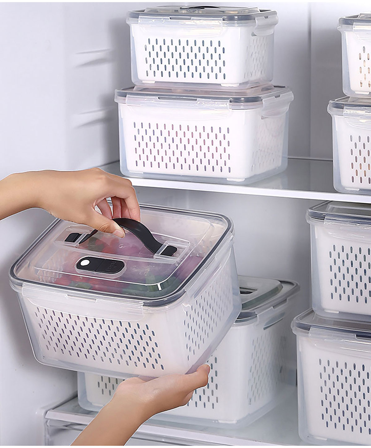三件/四件/五件/六件套手提長方形密封瀝水保鮮盒