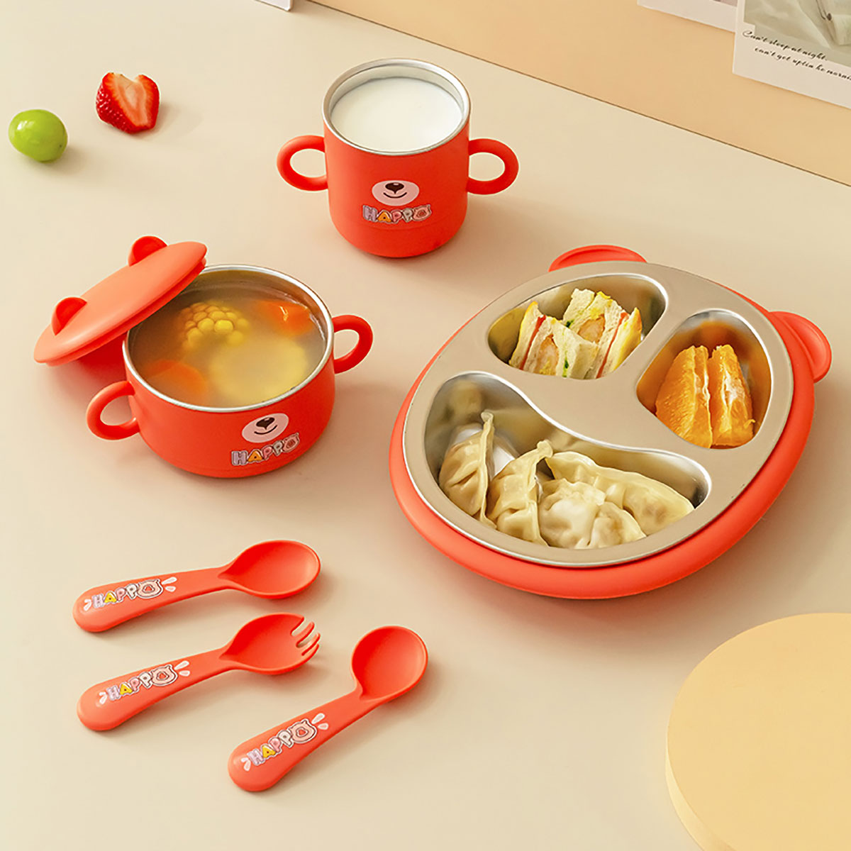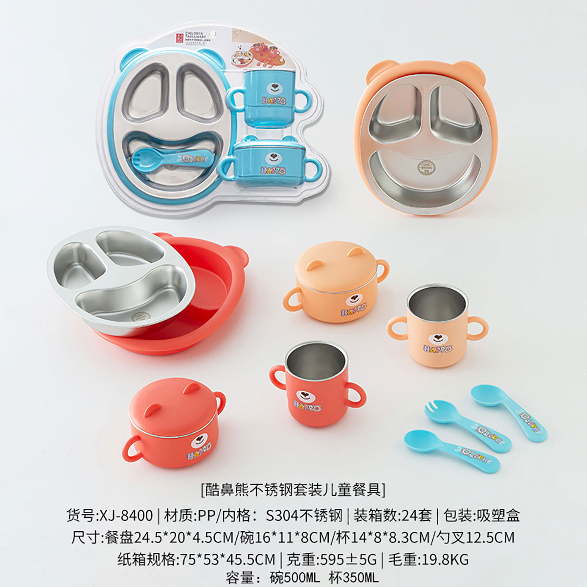 Size: 餐盤245*200*45mm/碗160*110*80mm/杯140*80*83mm/勺叉125mm