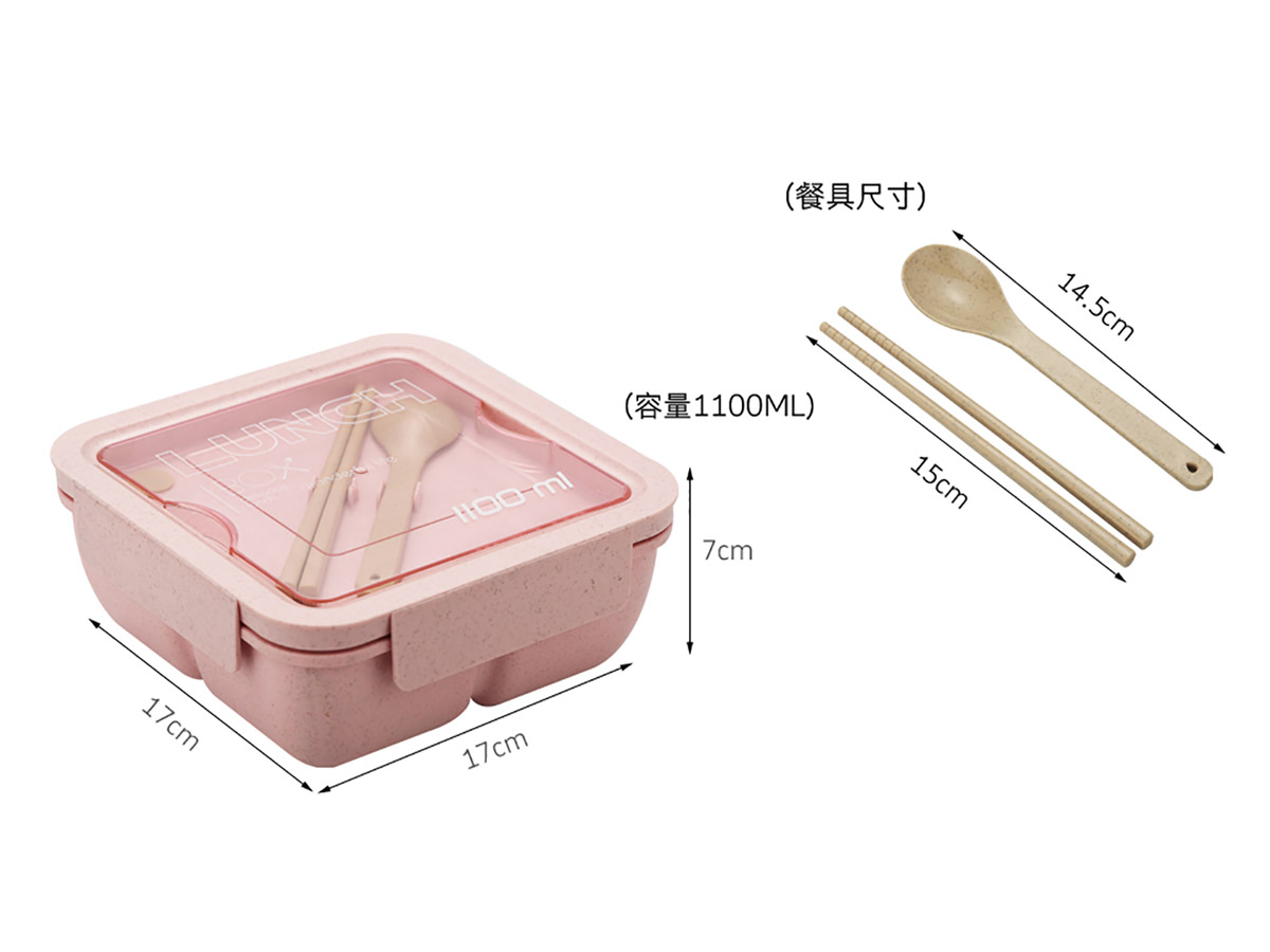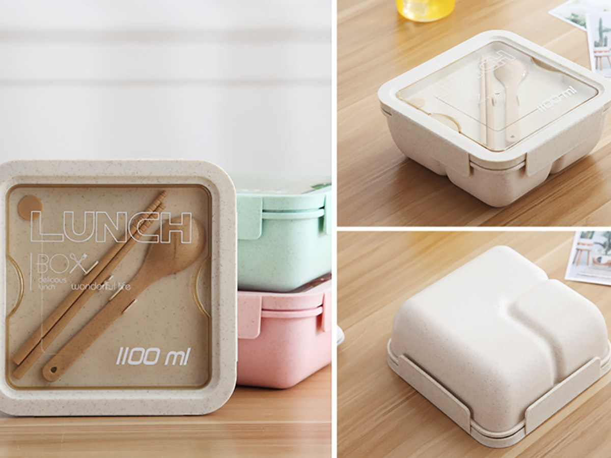麥秸稈正方形密封飯盒(1100ml)