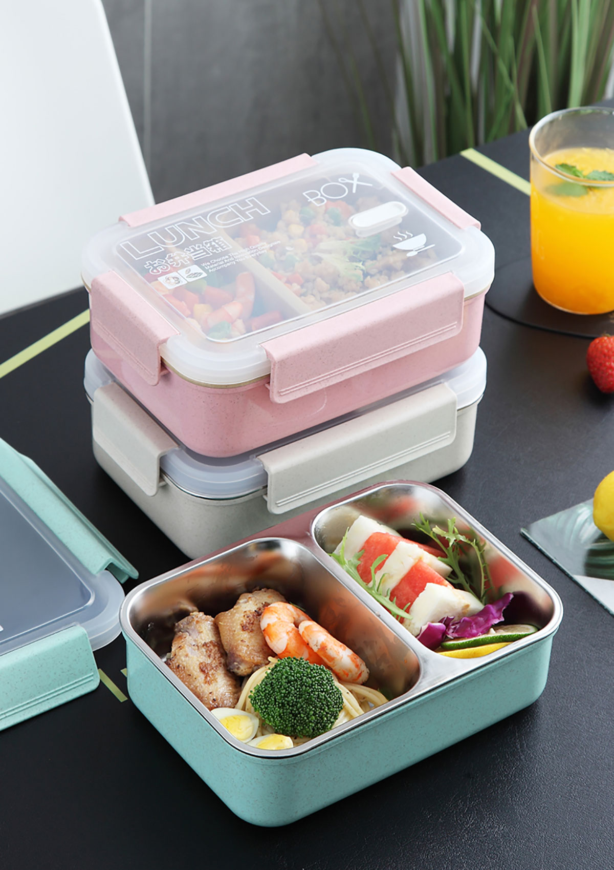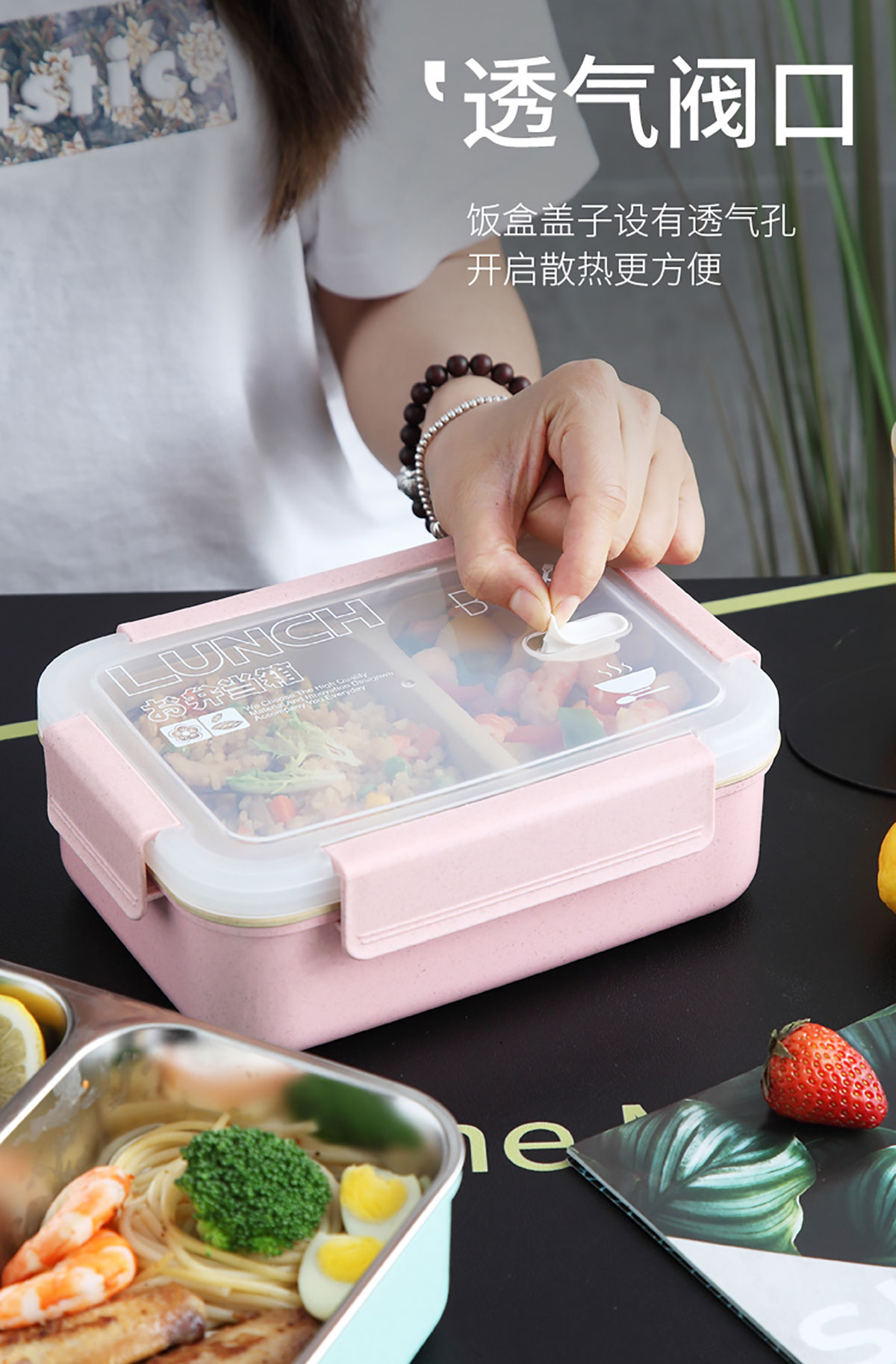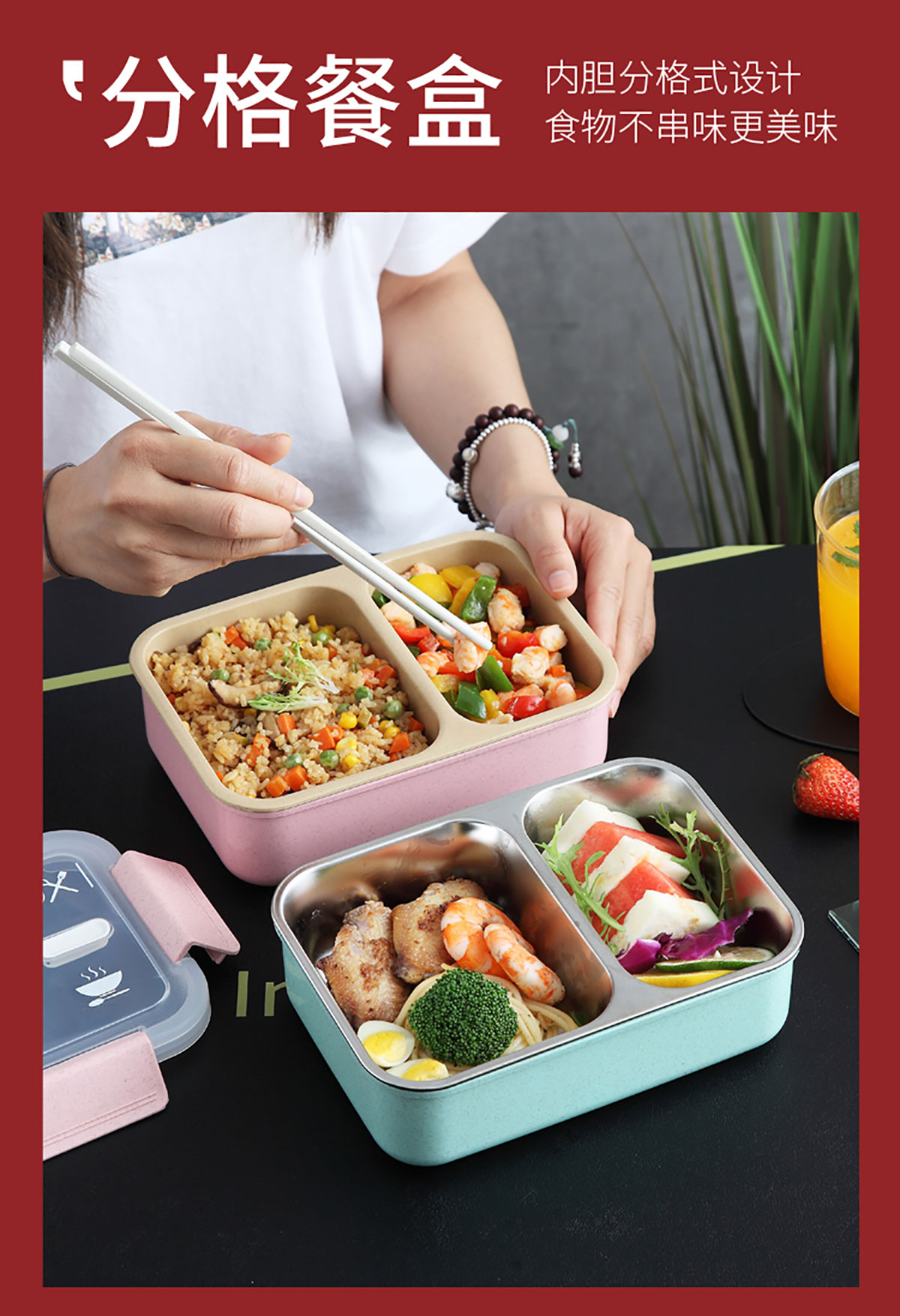 麥秸分格/分格201不銹鋼便當(dāng)盒