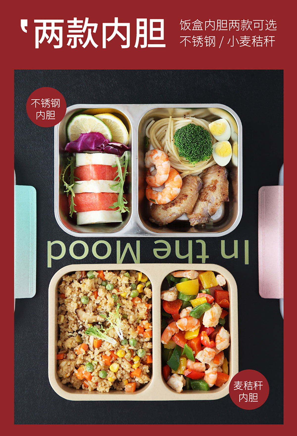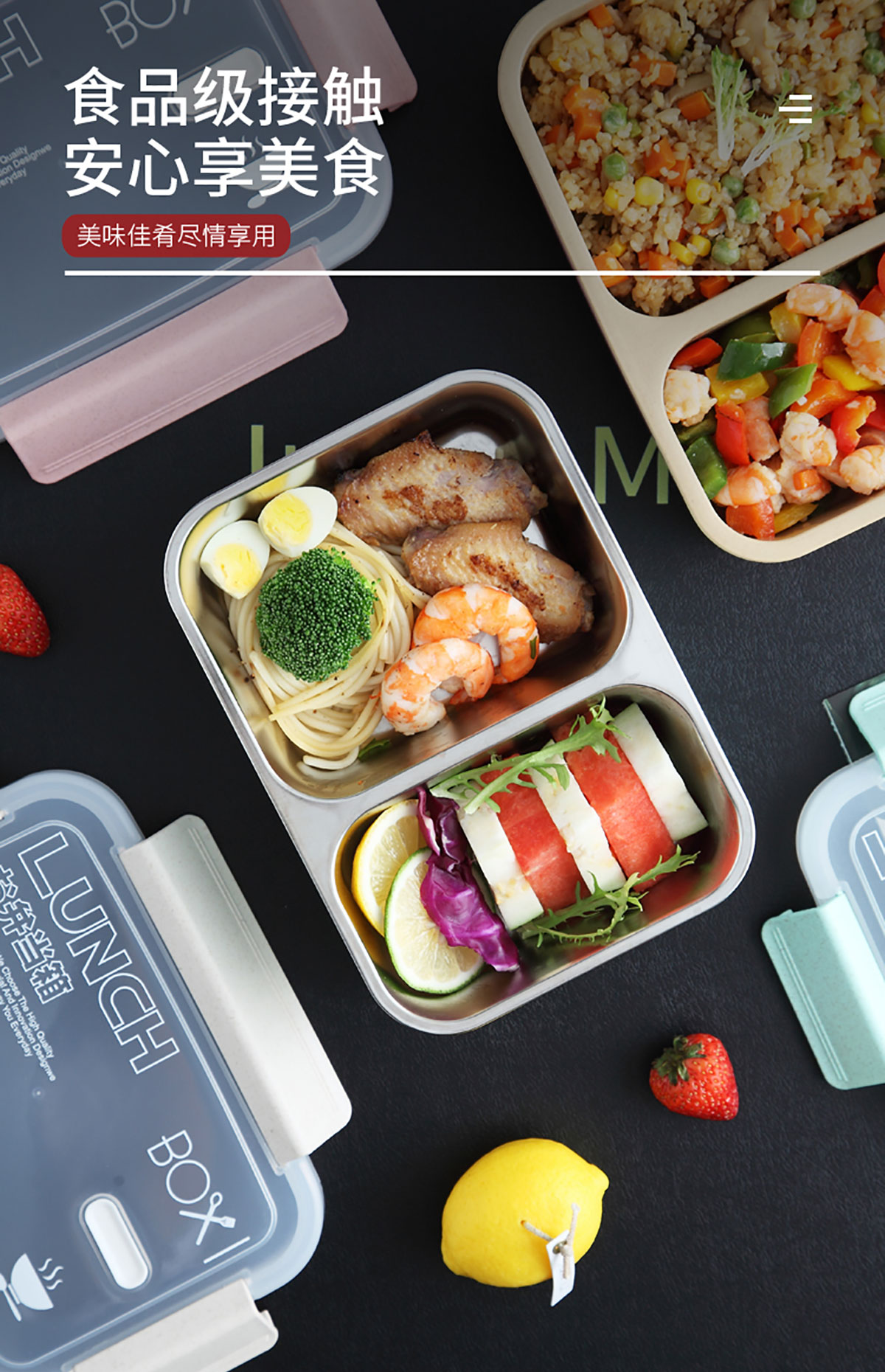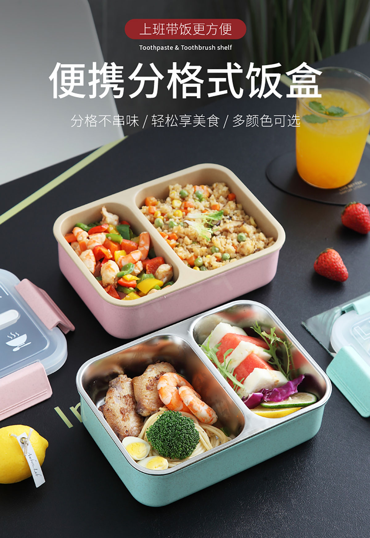 麥秸分格/分格201不銹鋼便當(dāng)盒