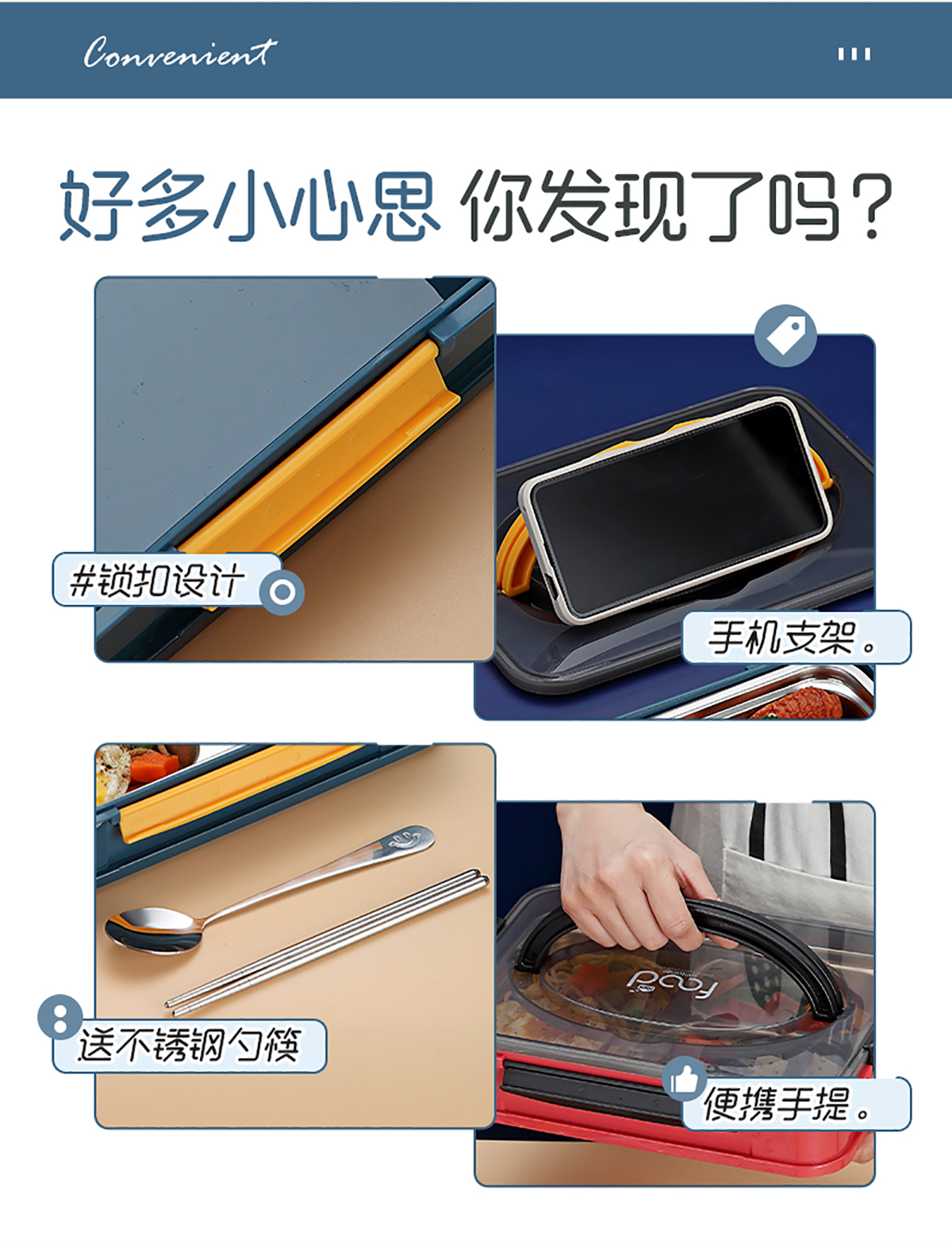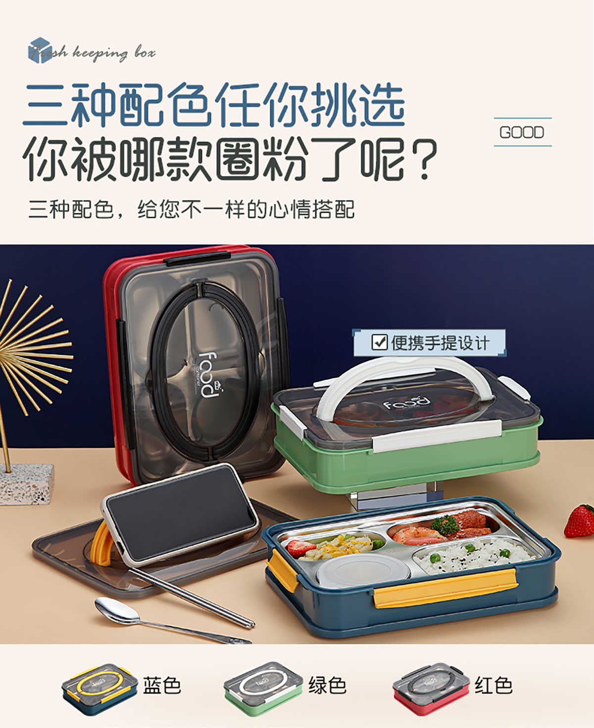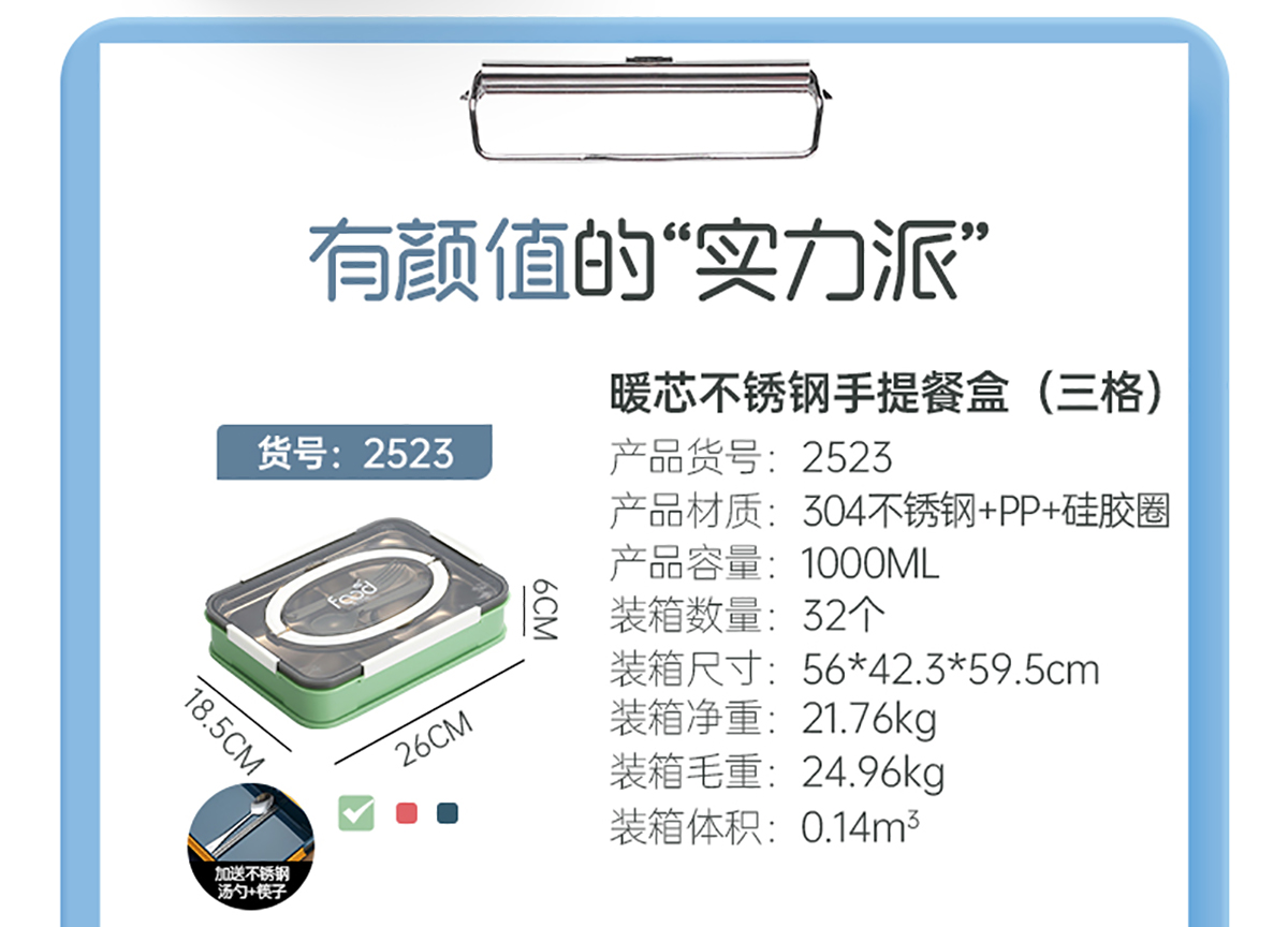 暖芯3格/4格不銹鋼手提餐盒(帶湯碗)2022新色