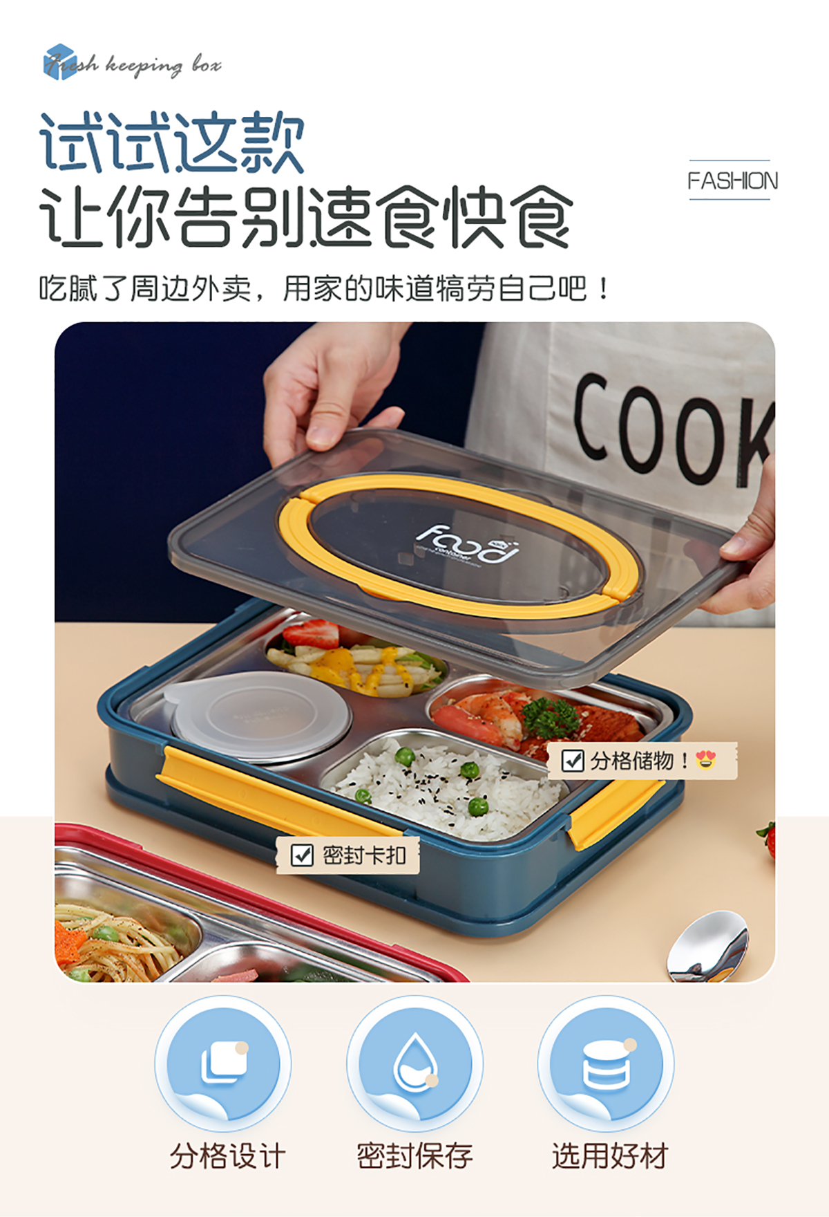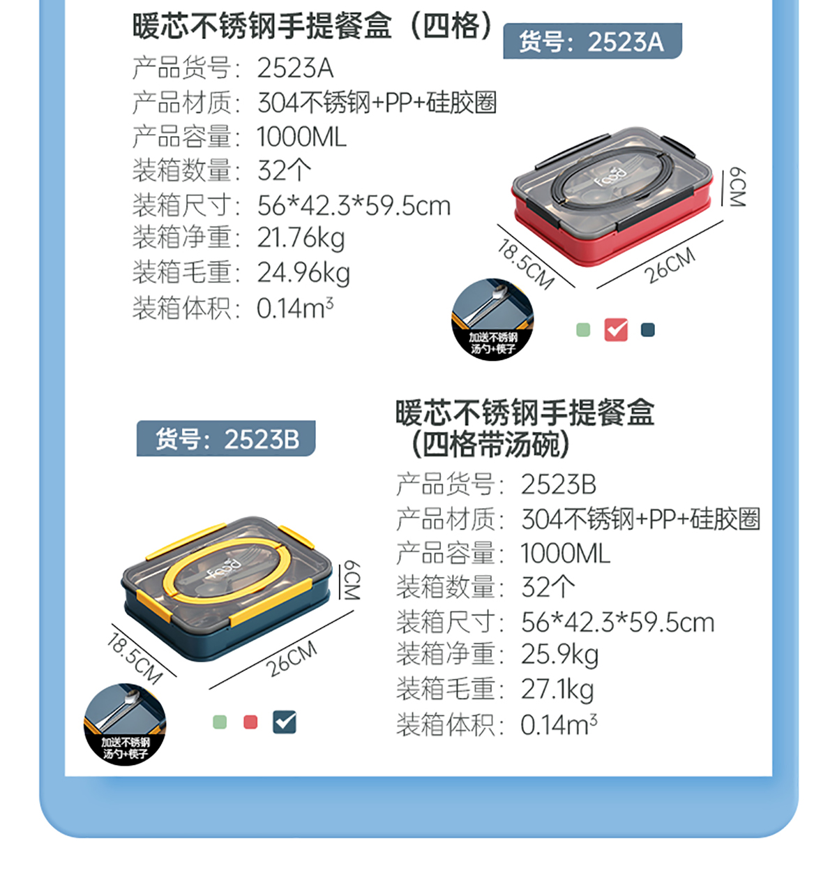 AQX-2523B(4格帶湯碗):260*185*60mm