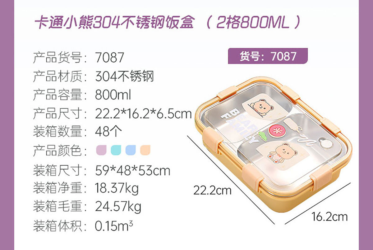 LX-7087(二格800ml):222*162*65mm