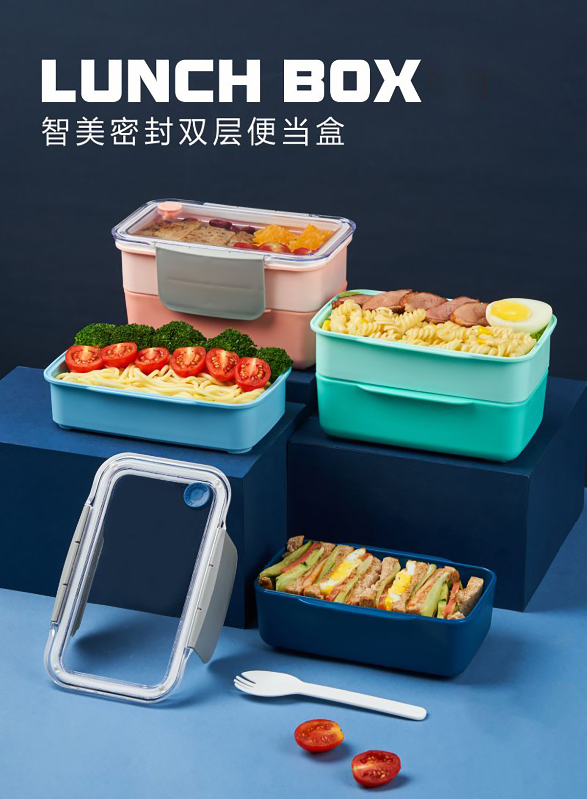 智美密封雙層便當(dāng)盒1.2L