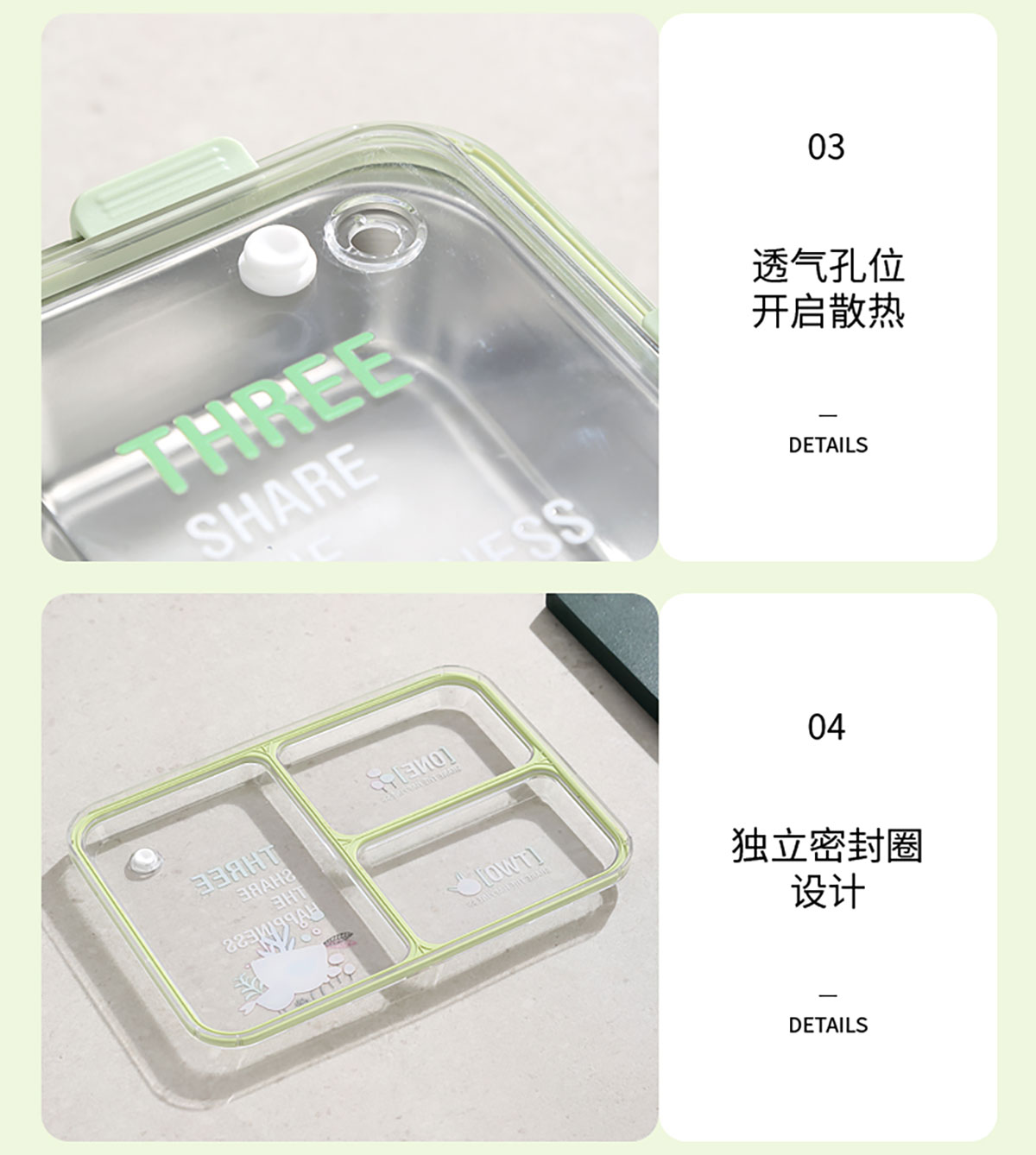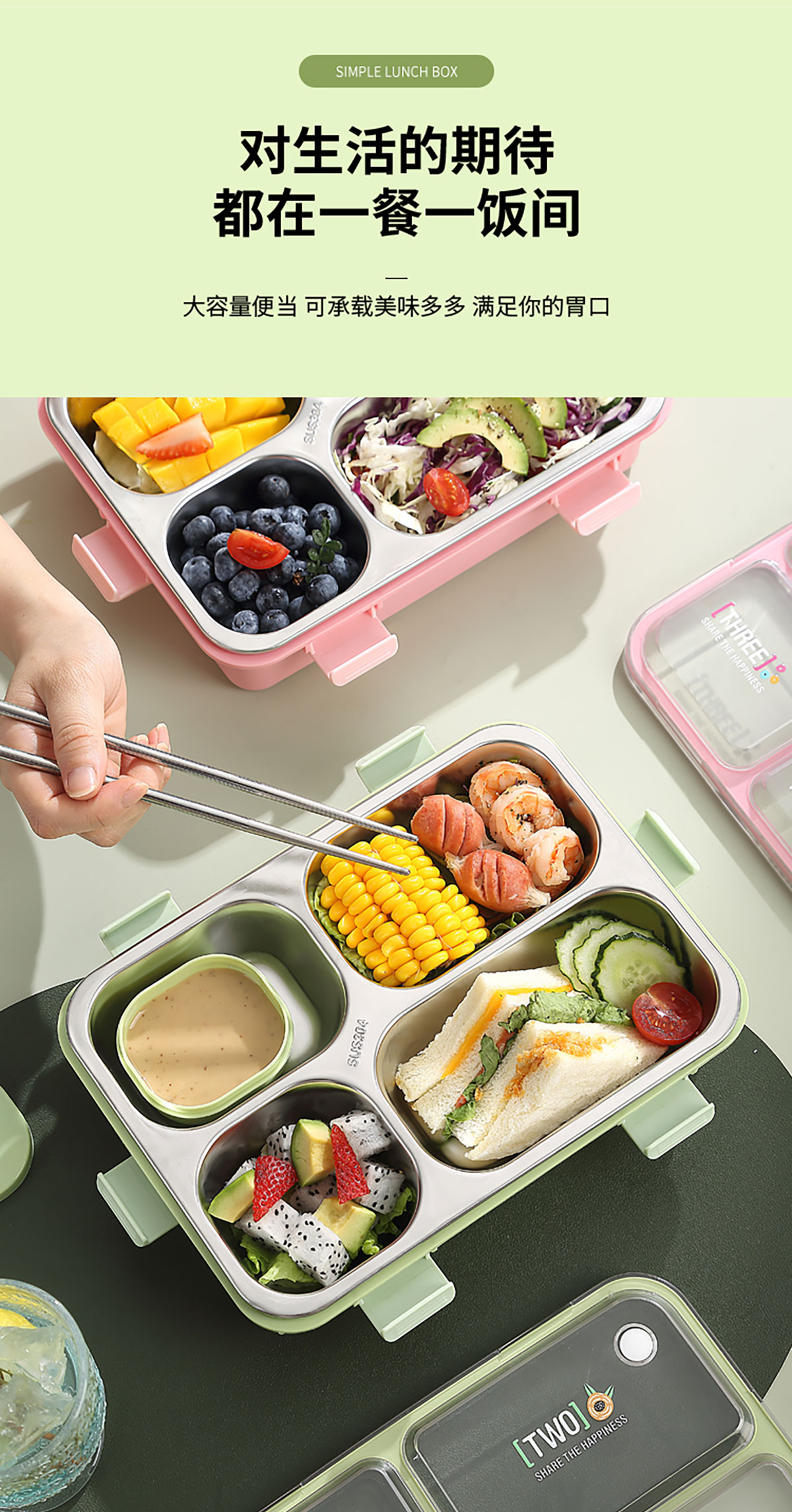 3D噴繪大三格/四格帶醬盒/四格帶碗加高不銹鋼餐盒