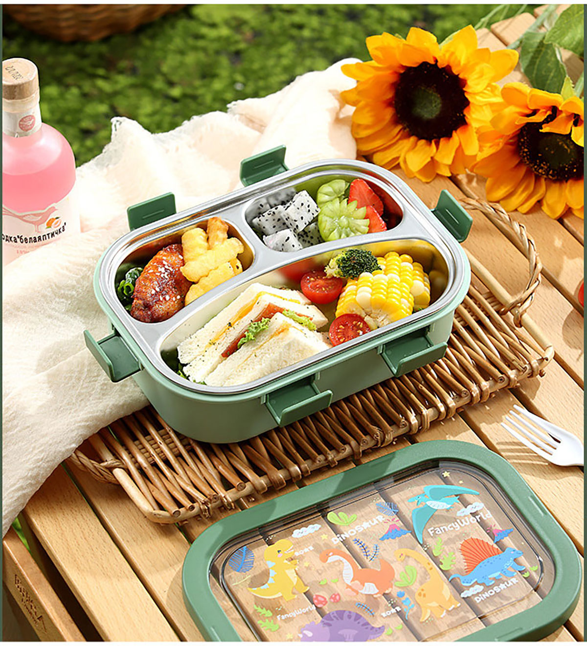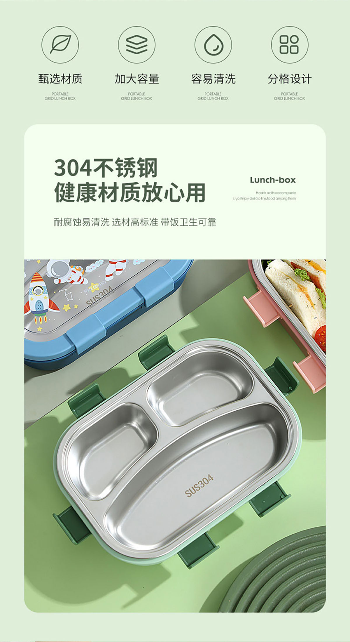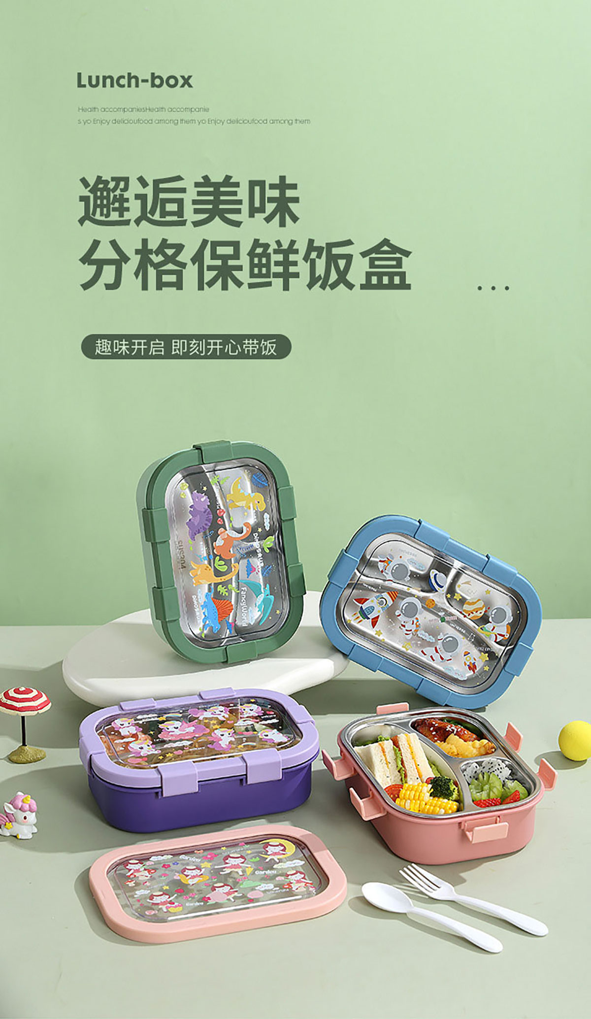 卡通不銹鋼飯盒(不銹鋼三格)850ml