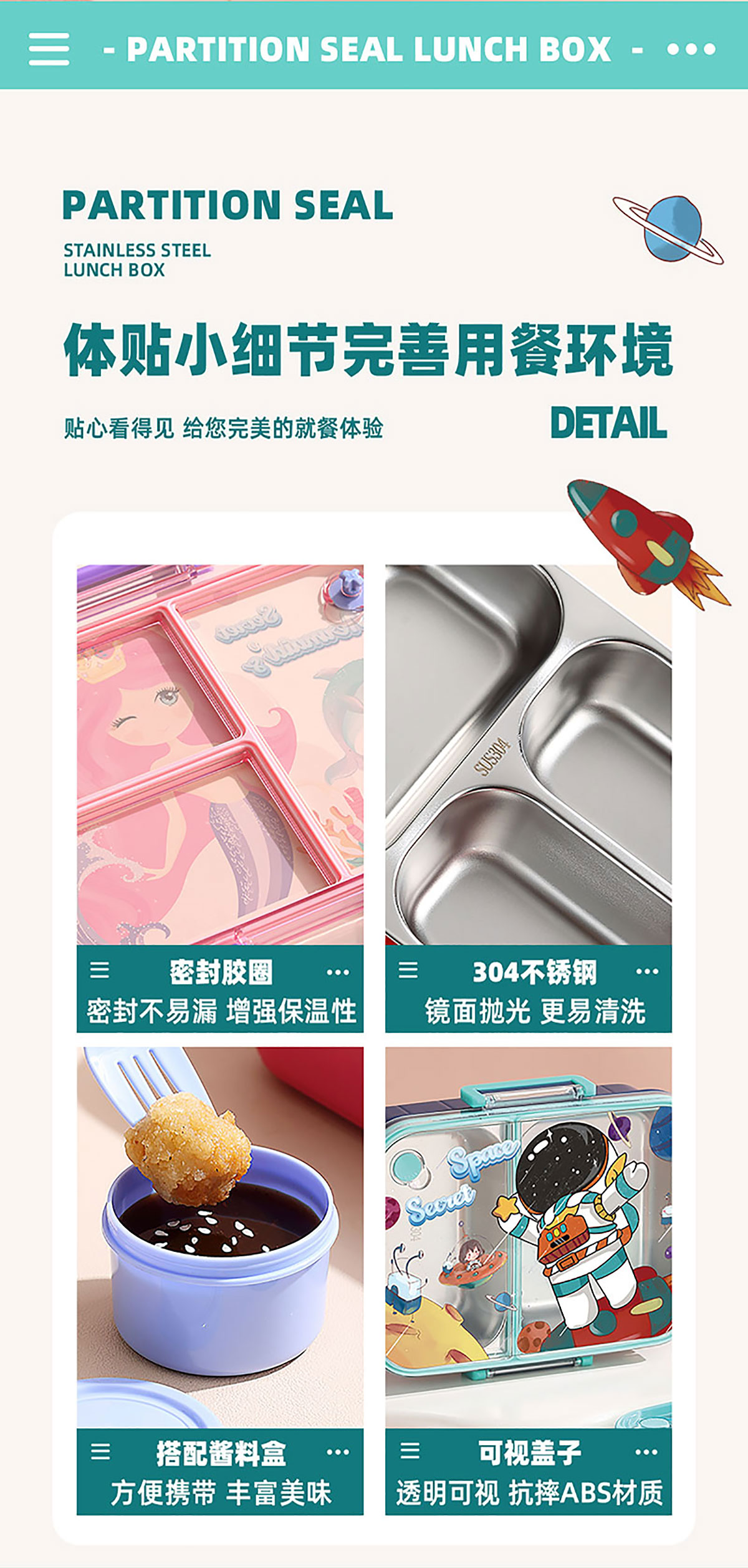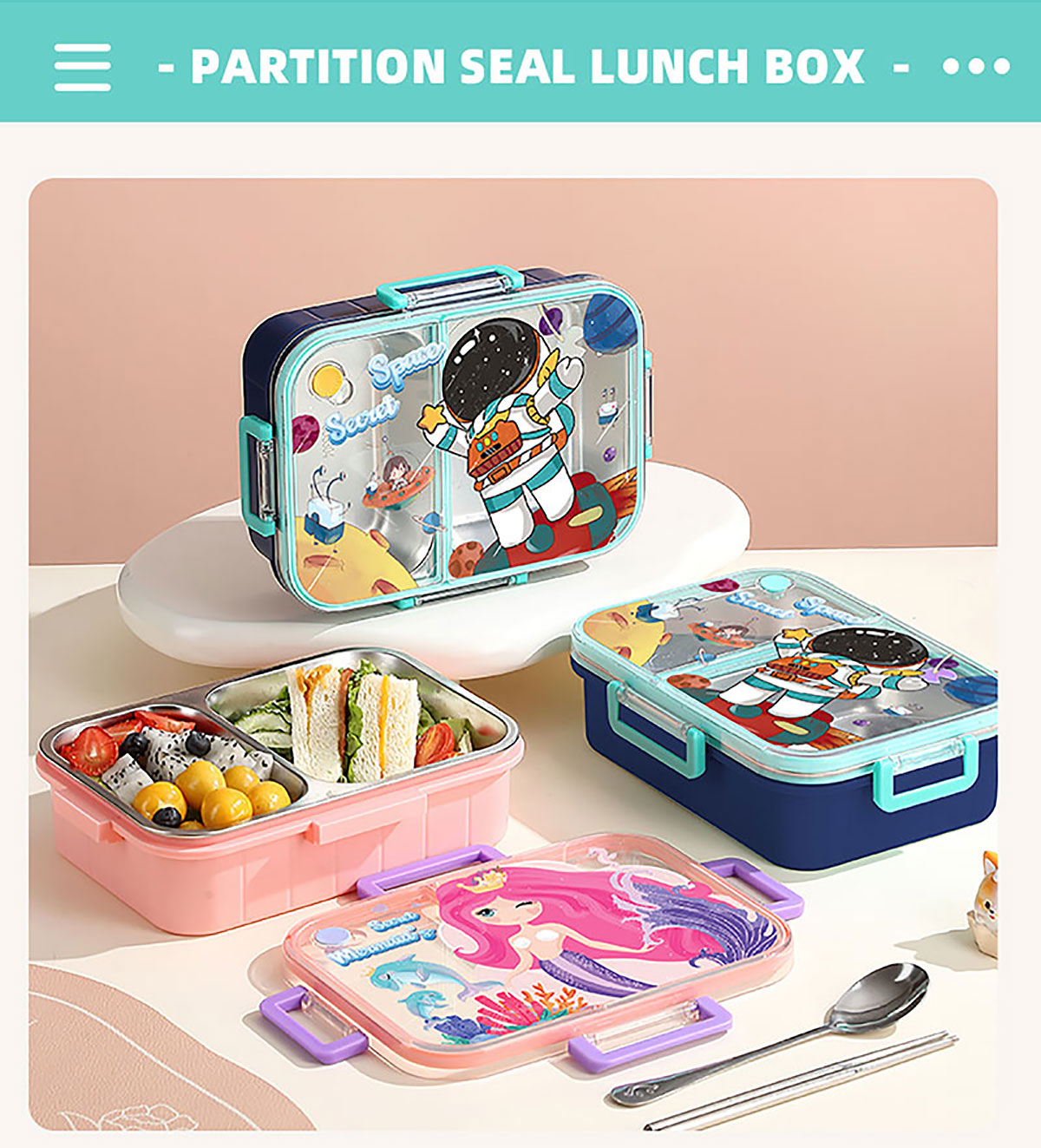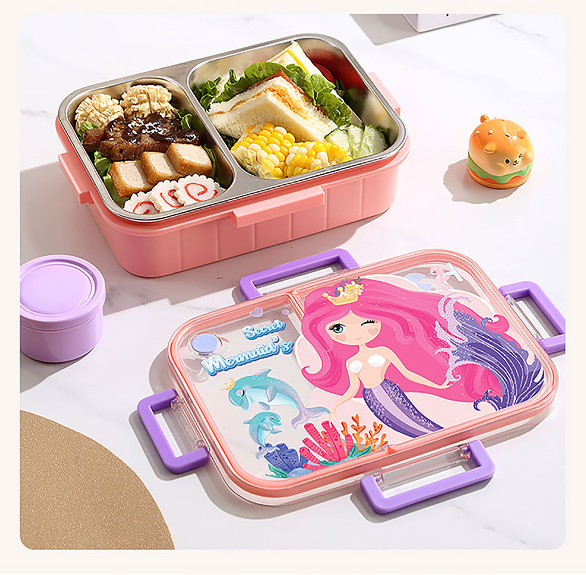 彩光卡通不串味餐盒(不銹鋼2格800ml/3格750ml+醬料杯80ml)
