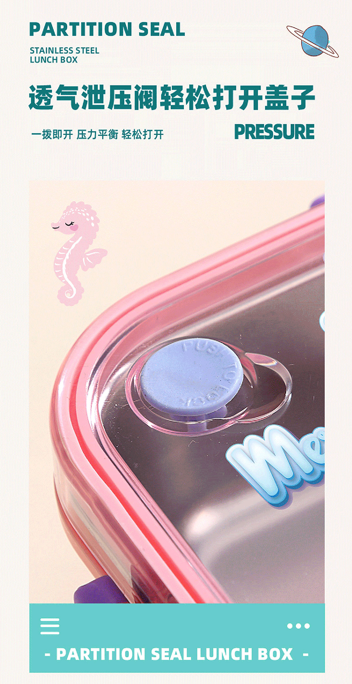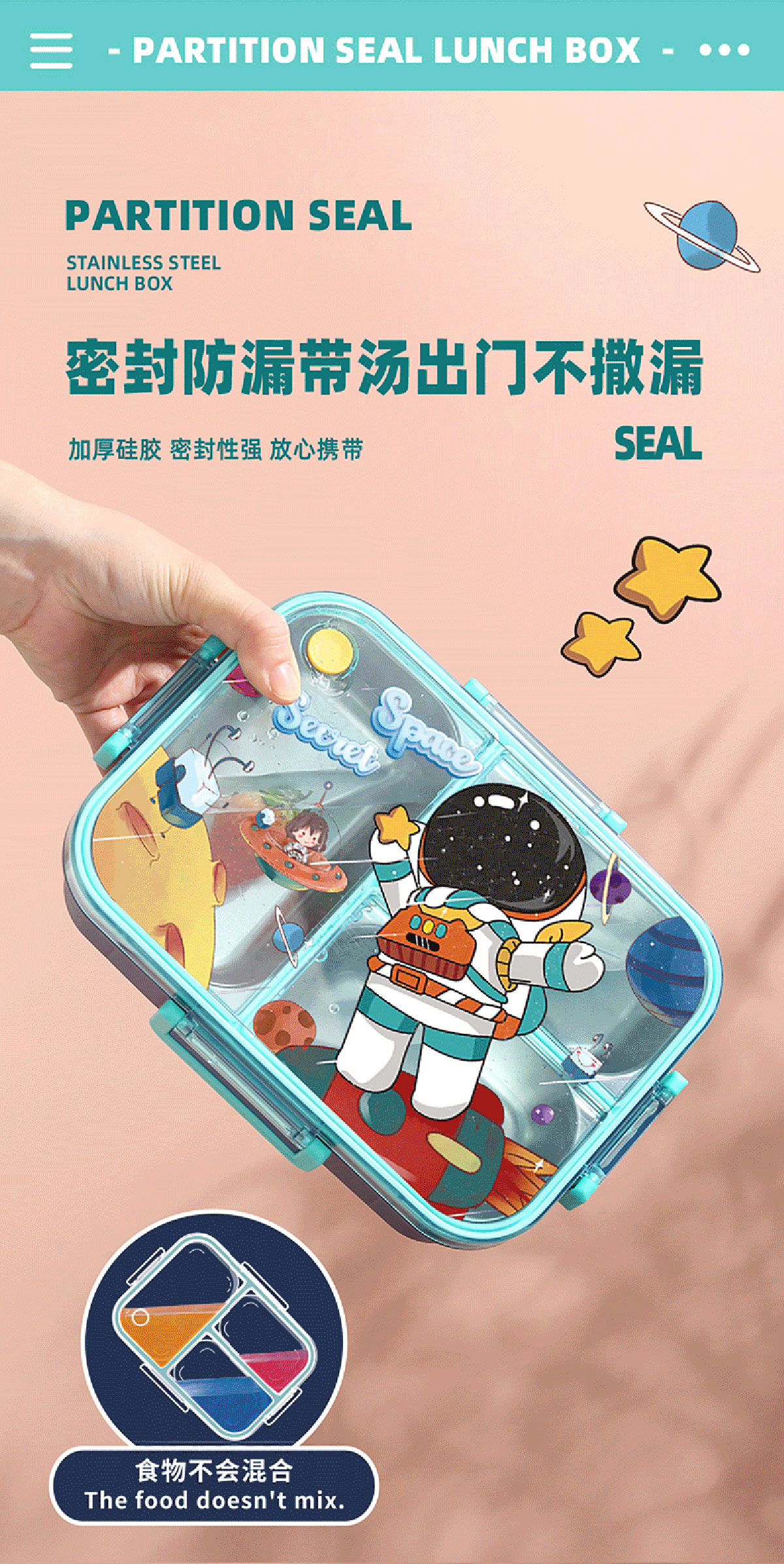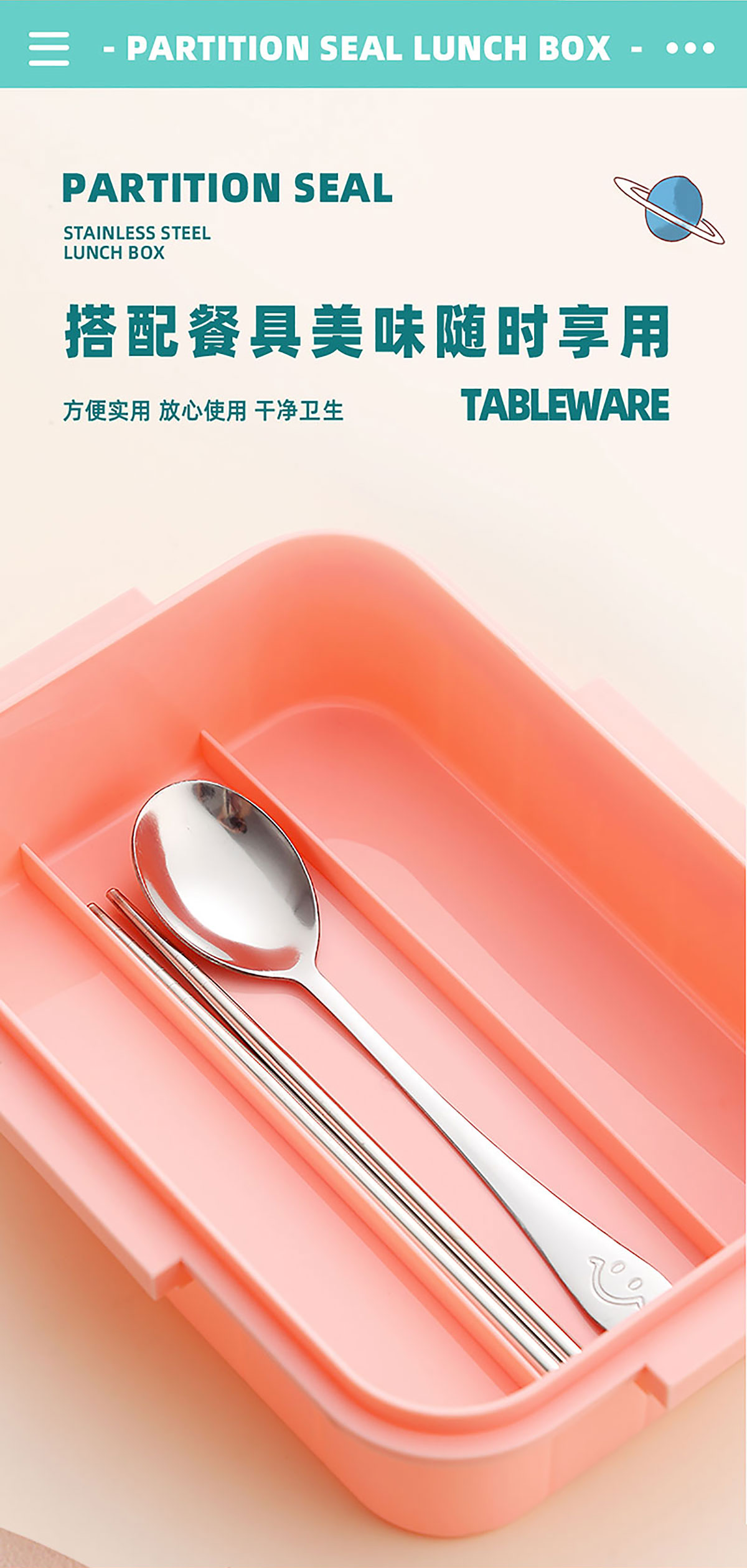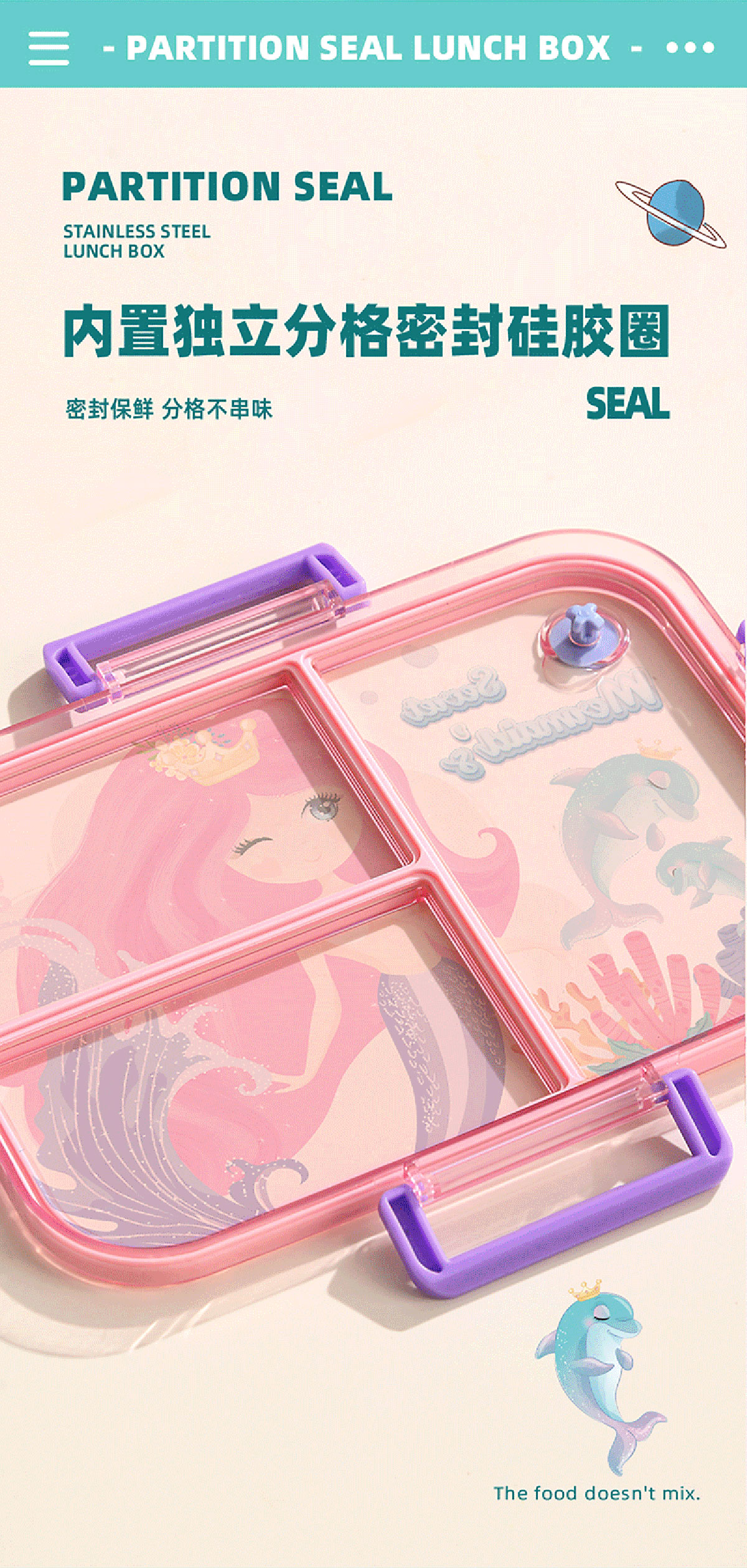 彩光卡通不串味餐盒(不銹鋼2格800ml/3格750ml+醬料杯80ml)