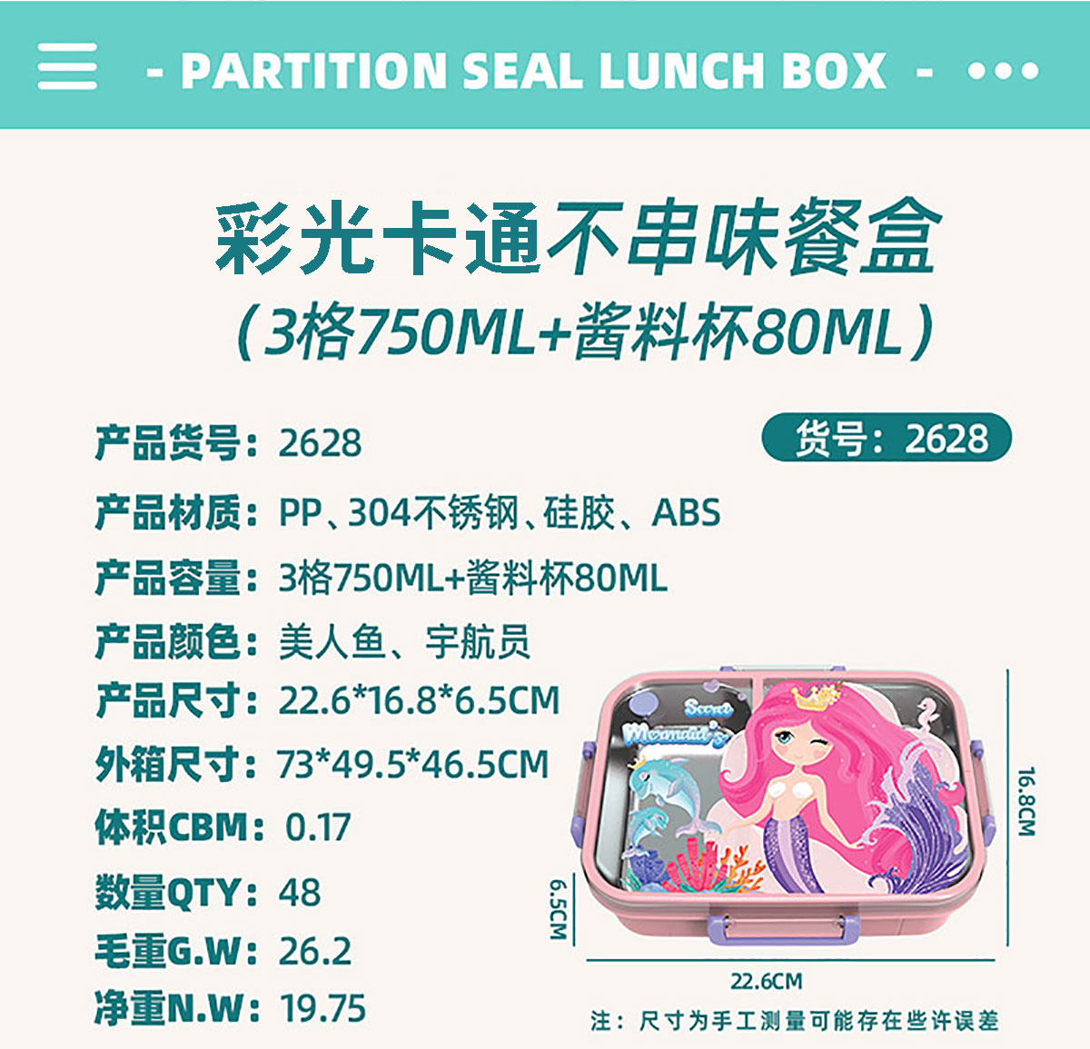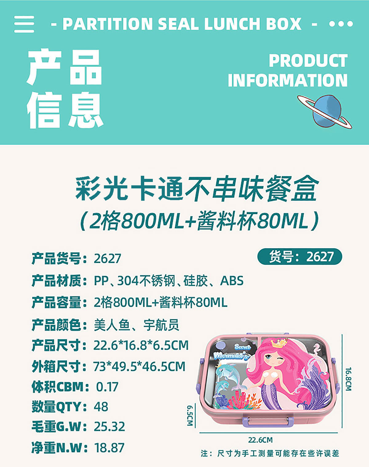 Size: AQX-2627:226*168*65mm/不銹鋼2格800ml+醬料杯80ml