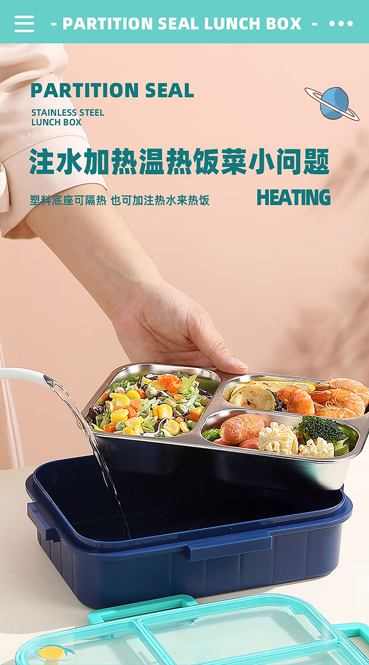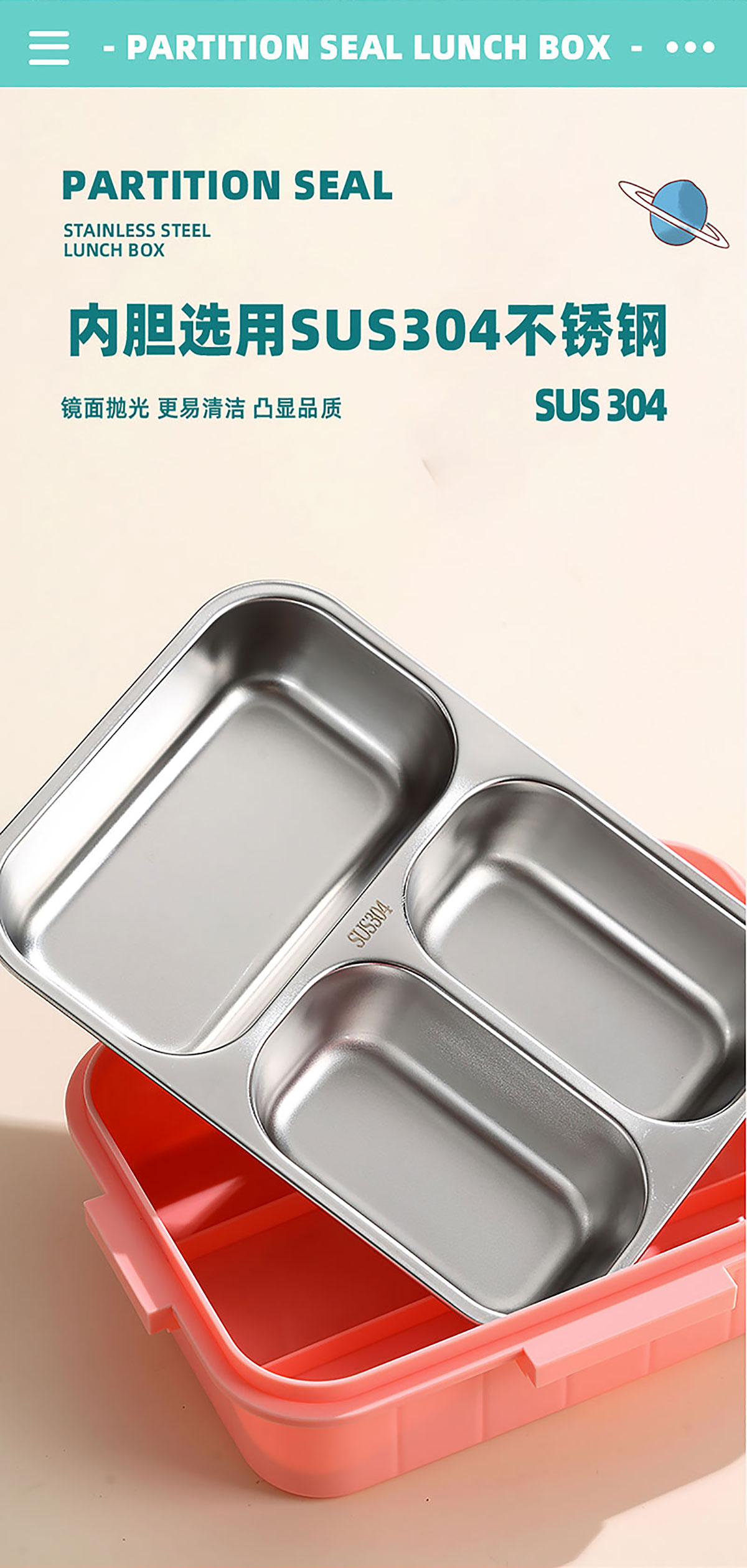 AQX-2628:226*168*65mm/不銹鋼3格750ml+醬料杯80ml