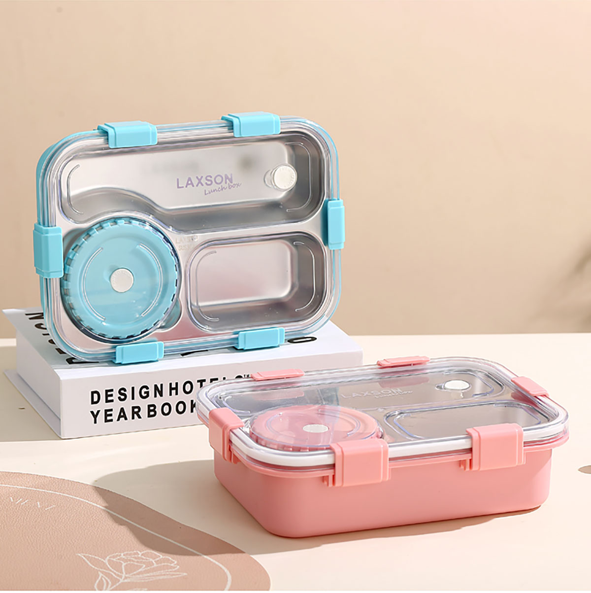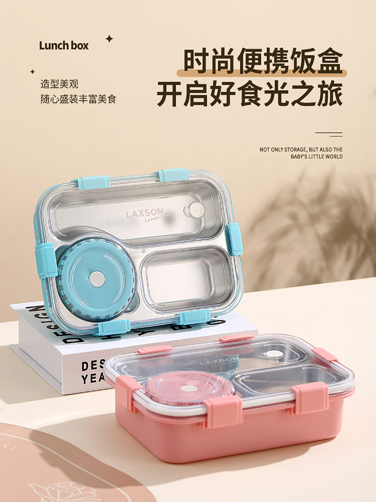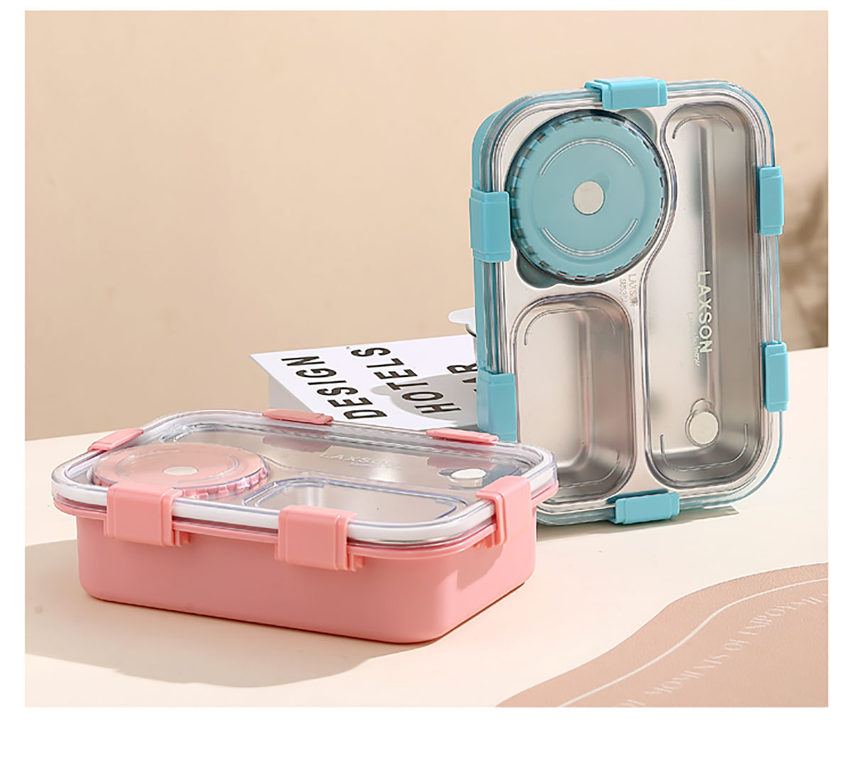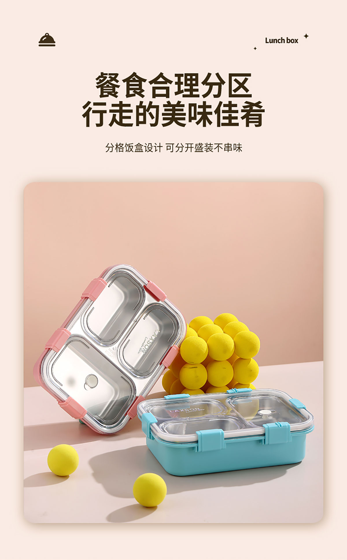 三格/四格不銹鋼餐盒+PP碗/不銹鋼碗(配塑料叉勺、無(wú)彩盒)